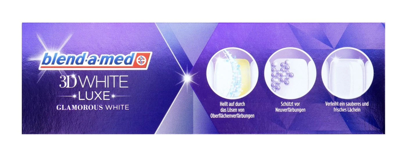 Blend-a-Med 3D White Luxe Glamorous White ist ein Zahnpflegemittel. Die zahnschmelzschonende Zahncreme löst Oberflächenverfärbungen und hellt die Zähne auf. Sie schützt zusätzlich vor Neuverfärbungen.