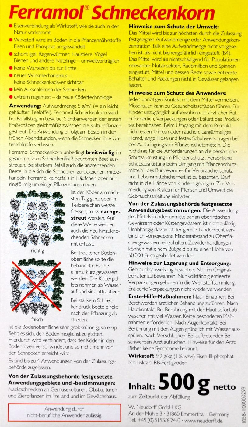 Für gewöhnlich wirst du keine Schleimspuren oder toten Schnecken entdecken, da sie sich nach dem Fressen zurückziehen. Keine Sorge! Für deine Haustiere oder andere Tiere und Insekten ist das Granulat nicht gefährlich.