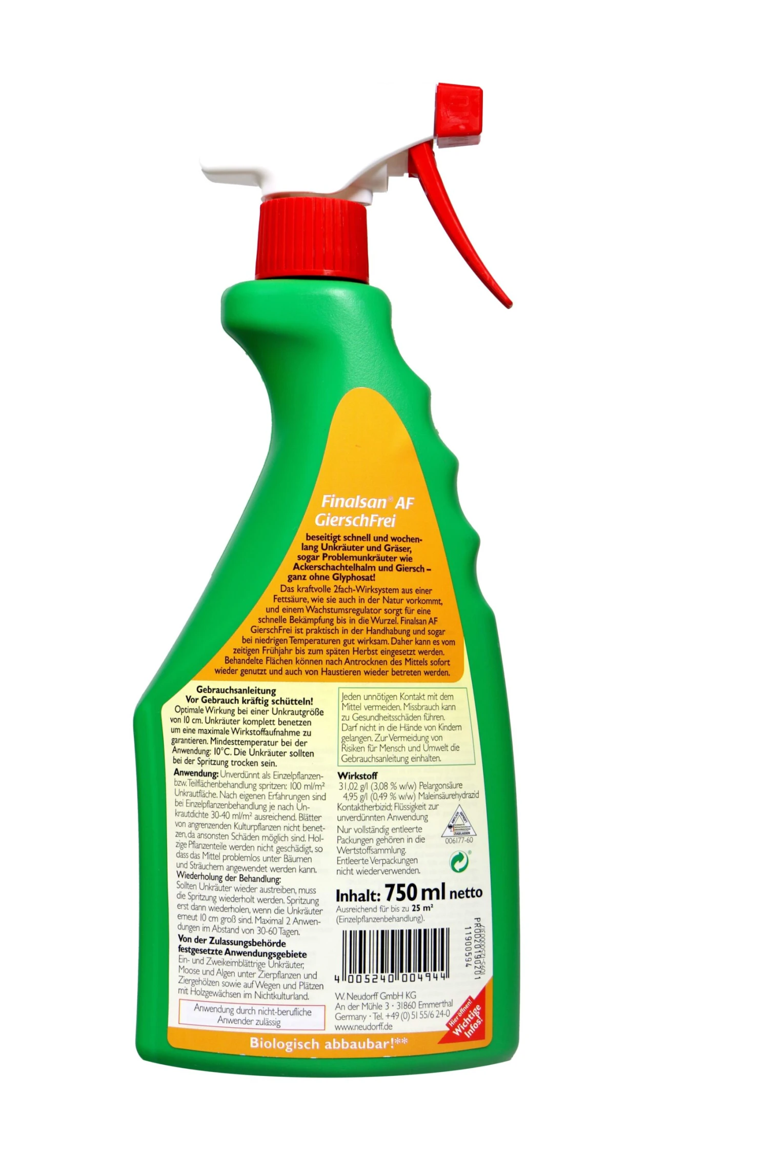 Probleme sind dazu da, um gelöst zu werden!? Nichts leichter als das, wenn es sich dabei um Problemunkräuter wie Giersch oder Ackerschachtelhalm handelt. Neudorff Finalsan GierschFrei ist stark, schnell und dank 2fach-Wirksystem sehr kraftvoll. Der Wirkstoff dringt tief bis in die Wurzeln und bekämpft die Unkräuter daher effektiv und nachhaltig.