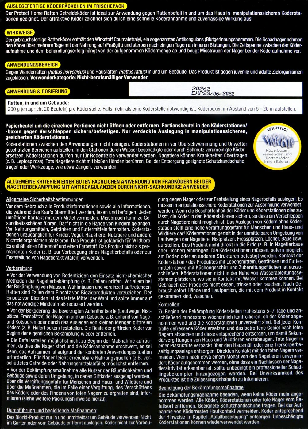 Protect Home Rodicum bietet für diesen Fall einen Ratten Getreideköder. Der Bestandteil Getreide lockt die kleinen Tierchen an und bereitet ihnen ein letztes Mahl.