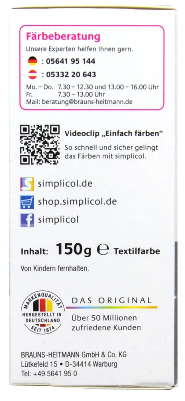 Simplicol Expert Brombeer-Rot Textilfarbe – 1706 – 150 G