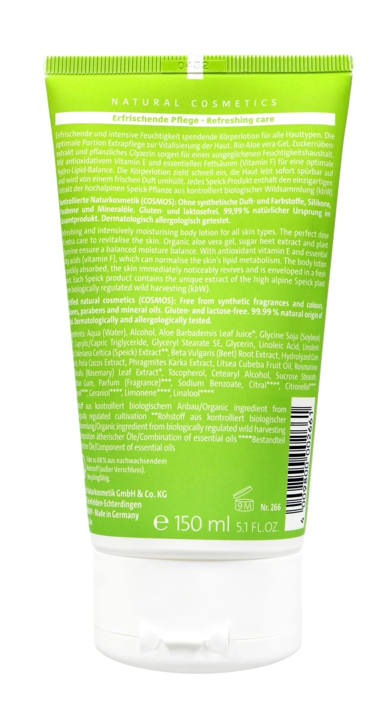 Aber das ist noch nicht alles! Speicks Körperlotion zieht blitzschnell ein, vitalisiert deine Haut sofort und umhüllt sie mit einem frischen Duft, der dich zum Strahlen bringt. Ein echtes Feuchtigkeitsspaß für deine Haut!